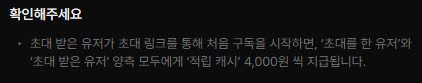 기존 클래스 101 구독자의 초대 링크로 구독을 하는 경우 양측 모두에게 4,000원의 캐시를 줍니다.